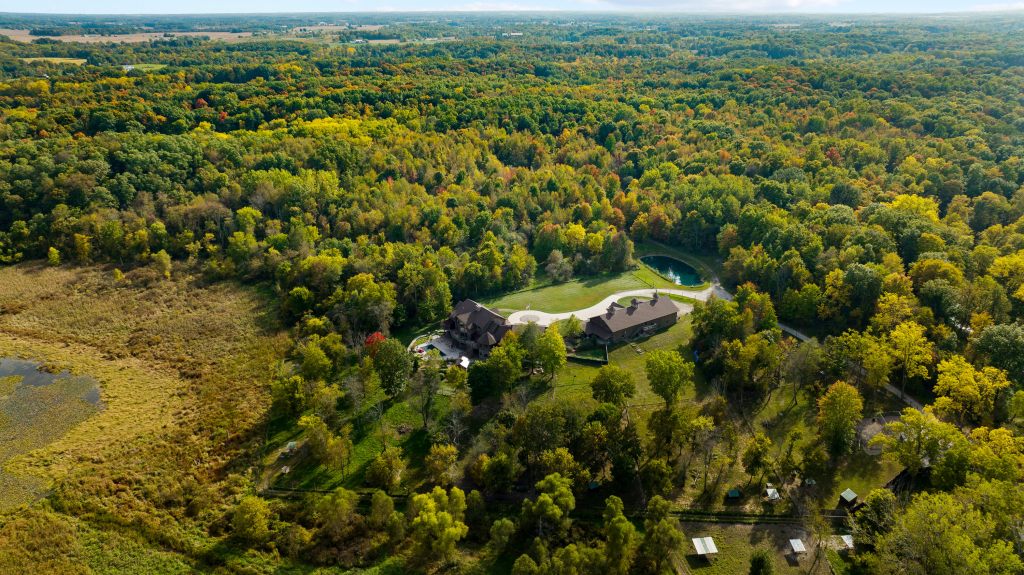 The property is located 15 miles outside of Auburn, Indiana, and truly is an outdoorsman’s dream. The property features 220+ acres of hardwoods, rolling hills, ponds, ravines and abundant wildlife. Campsites, firepits, lakes, and cabins are just part of this woodland experience.