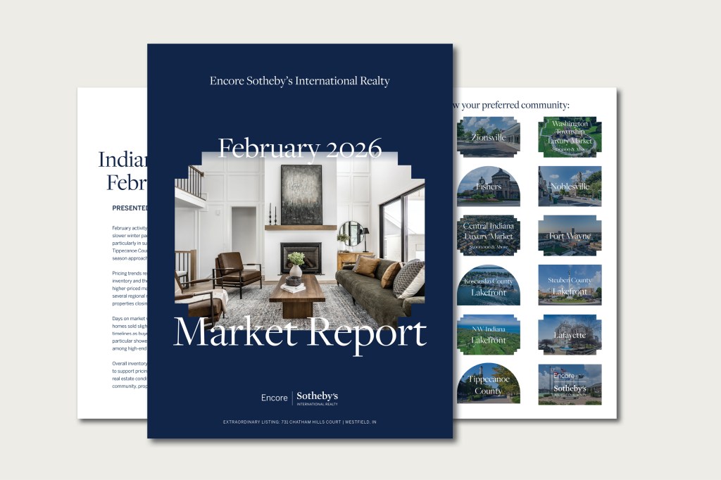 Encore Sotheby’s International Realty is a boutique residential real estate brokerage providing home sellers and buyers with a luxury level of service in Indiana and beyond. Specializing in the central, northeast and northwest regions of Indiana, the firm operates out of offices in Carmel, Indianapolis, Zionsville, Fort Wayne and Syracuse. Backed by the world-class Sotheby’s International Realty brand, clients benefit from local expertise with global reach. For all of your real estate needs, call 317.660.4444 or visit encoresothebysrealty.com.